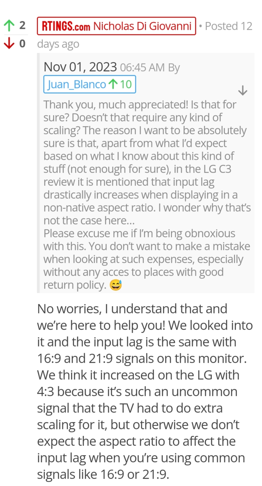 BTW 12 days ago RTINGS already confirmed for you that input lag is the same in 16:9π